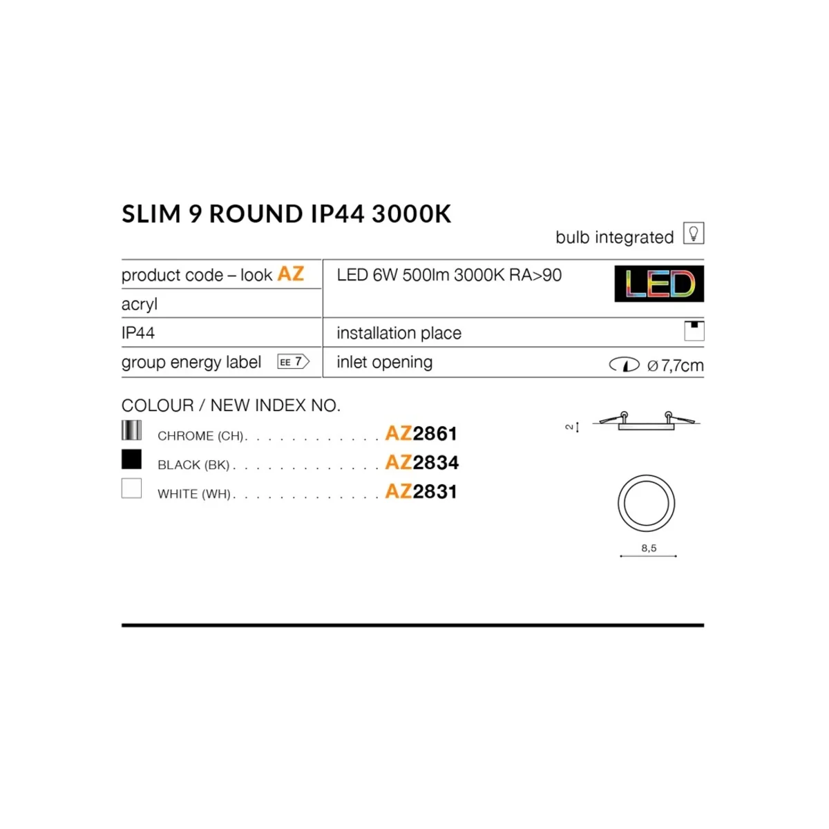 Стельовий світильник SLIM ROUND 9 3000K Білий AZ2831