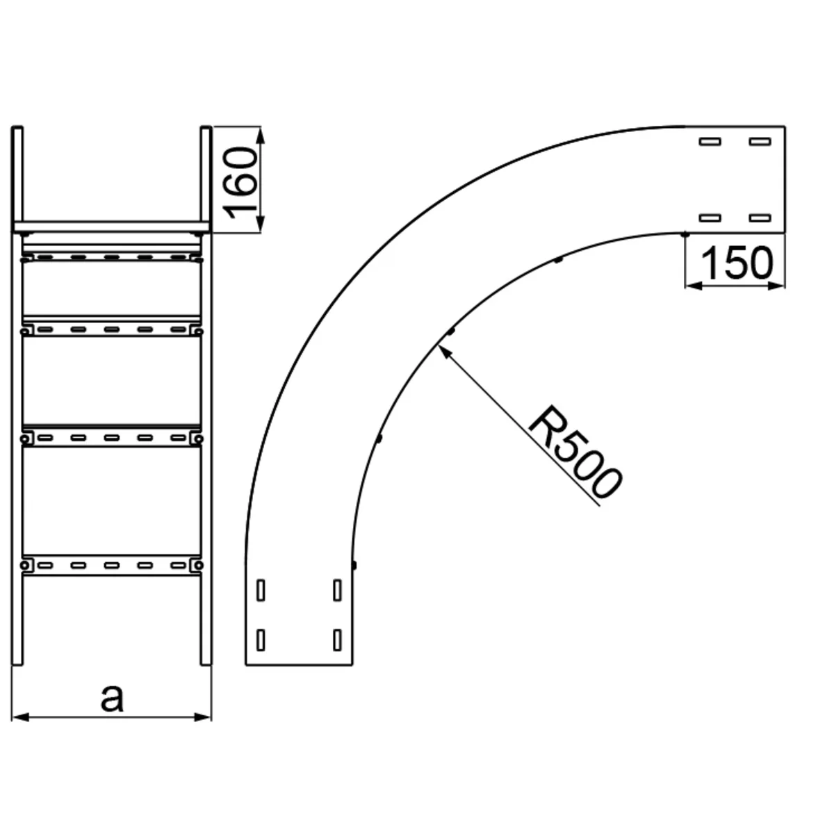Зовнішній вертикальний вигин для зміни напрямку траси кабелю.