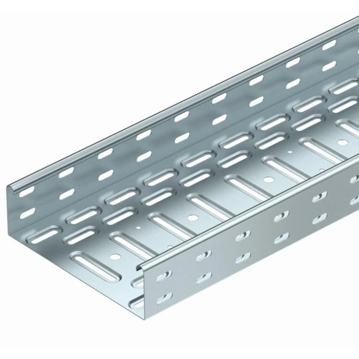 Лотки з висотою бортика 60 мм, для прокладання кабелів рожевого кольору. Монтаж лотків на кронштейни за допомогою гвинтів ФРСБ 6х12. Перфорація на дні лотка 7 x 32 мм полегшує монтаж і вентиляцію кабелів. Отвори 7 x 20 мм на бічній стінці служать як з’єднувальні отвори та для кріплення кришки. Канали шириною від 100 мм мають отвори в нижній частині Ø 11 мм і поперечною перфорацією, що посилює їх дно. Загнуті краї лотка забезпечують додаткову жорсткість і захист країв.