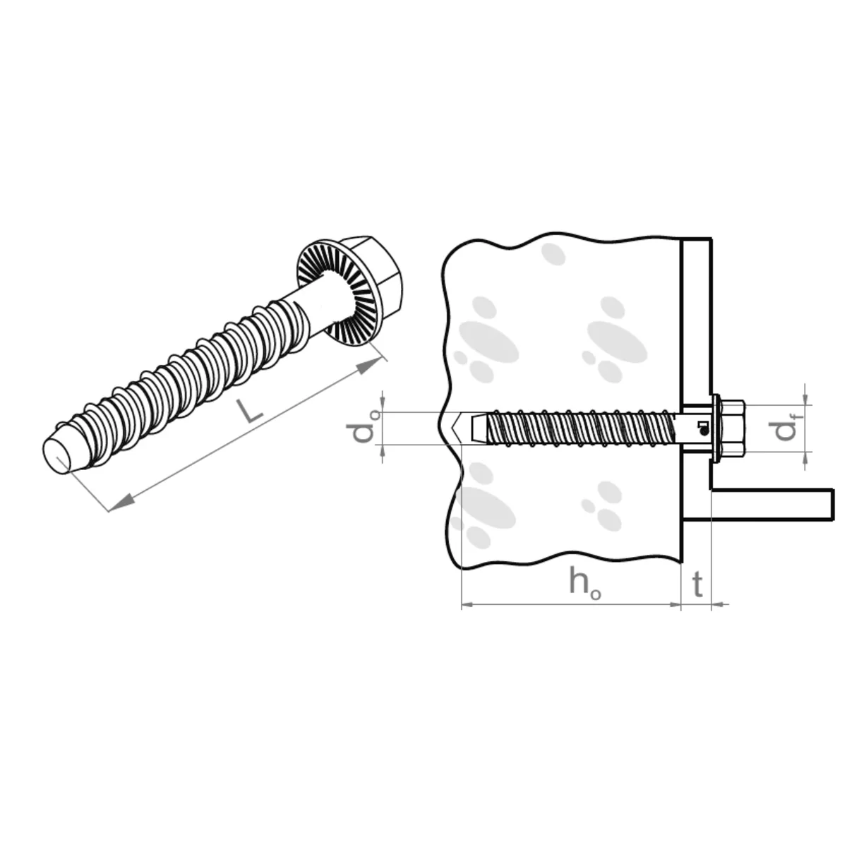 СБСО Шуруп по бетону. Застосування: Кріплення конструкцій, підвішування кабельних трас до бетонної основи