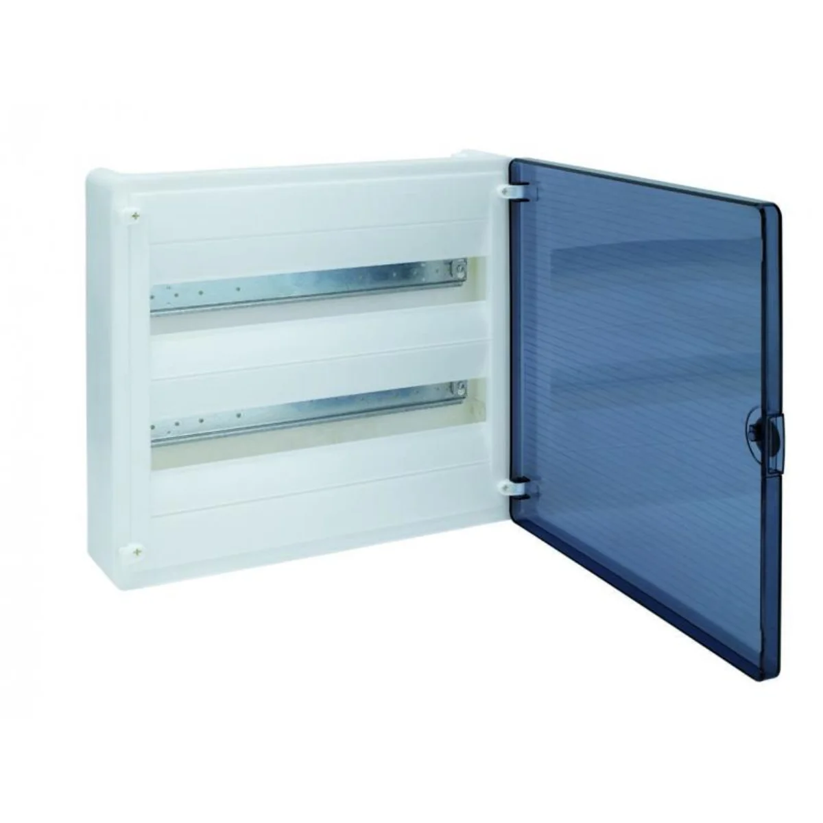 1-4 рядні накладні розподільні щити, від 4 до 72 модулів, для приладів глибиною до 70 мм, поставляються з суцільними або прозорими дверцятами. Ящик виготовлений із пластику. Проста заміна дверей ліва-права, без демонтажу маскувальної рамки. За бажанням можлива установка замка з ключем. Двері відкриваються на кут 180°.