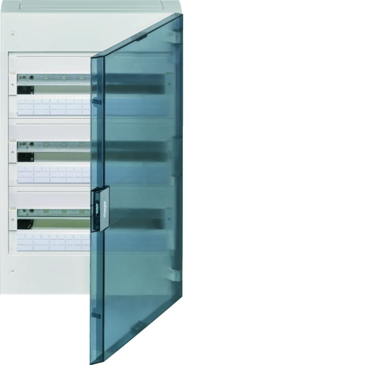 Розподільчий пристрій для поверхневого монтажу, 3 ряди/18 модулів, прозорі двері, серія vega.