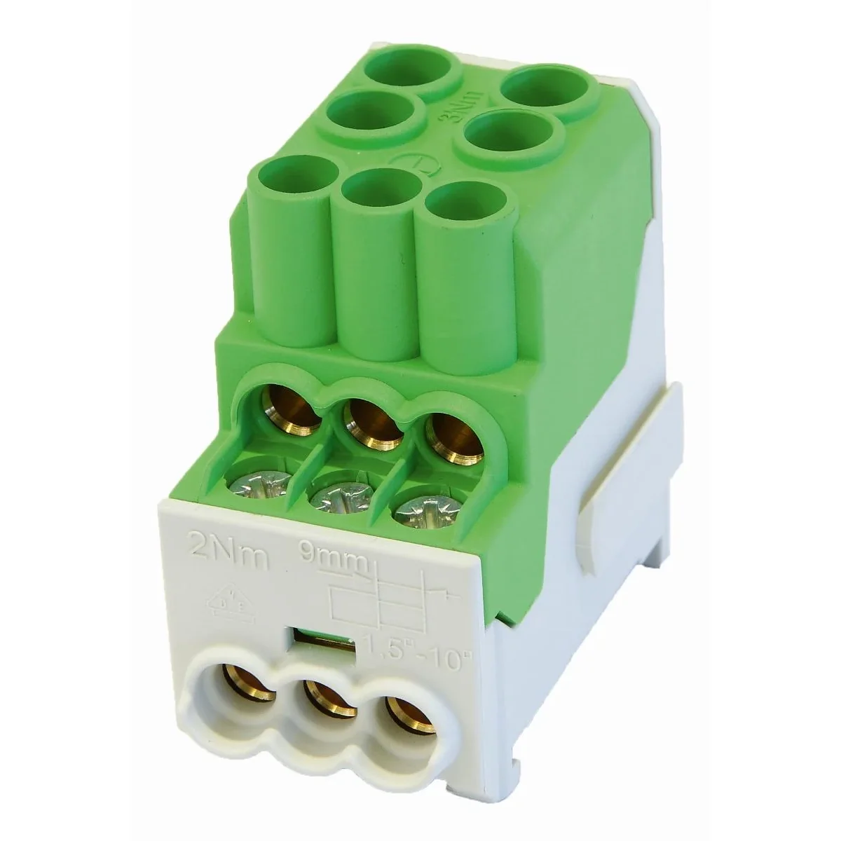 Розподільний блок - Al/Cu 80010 SIMBLOCK зеленийце пристрій, який розподіляє енергію та потужність, що надходить від одного основного кола, на кілька менших.